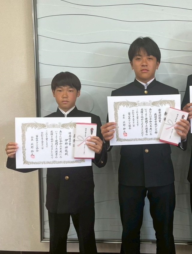 富山県テニス協会から、昨年度実績があった個人と団体に表彰がありました。
