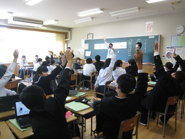 2組学級目標決め、3組数学、4組社会の様子です。