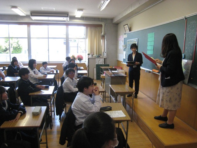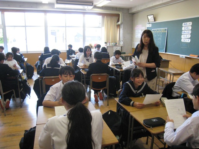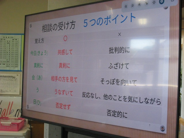 1学年では「心の健康に関する授業」としてスクールカウンセラーの山﨑先生との特別授業を実施しました。第1回の内容は、“心の避難訓練”として自分だけで解決できない困り事が生じた時の、相談の仕方や逆に相談を受ける際のポイントについて学習しました。授業では山﨑先生と担任のデモンストレーションを見た後、ペアになってポイントを意識しながらロールプレイを体験しています。本日は1・3・4組で実施し、来週の20日(火)に2・5組でも実施します。