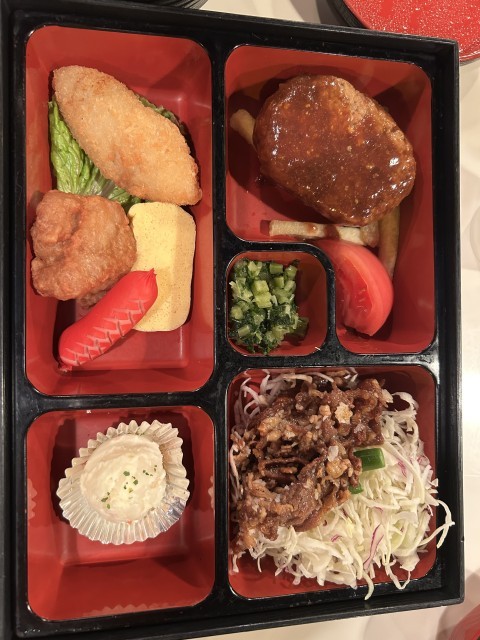 メインはハンバーグと唐揚げです。