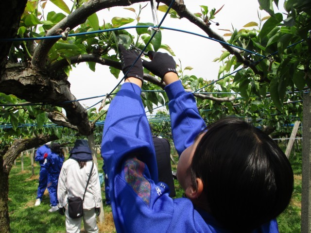摘果の方法や注意点を踏まえ、各自で作業に取り組みました。関係者の皆様、本日は貴重な体験の機会を頂きありがとうございました。