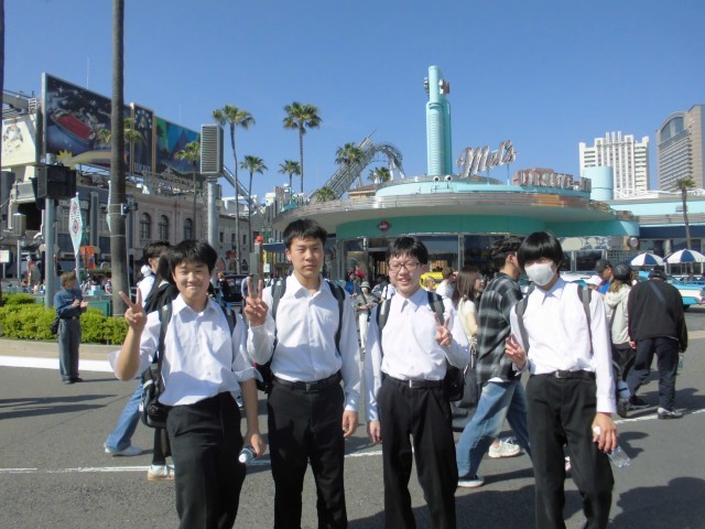 ユニバーサルスタジオジャパン、コリアタウン&野球観戦、大阪・関西万博、よしもと新喜劇&道頓堀散策、関西空港&海遊館の5つのコースに分かれ、コース別学習を行いました。