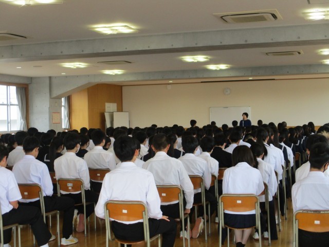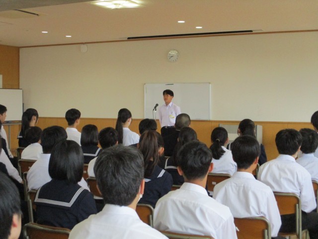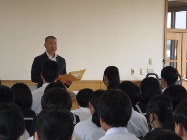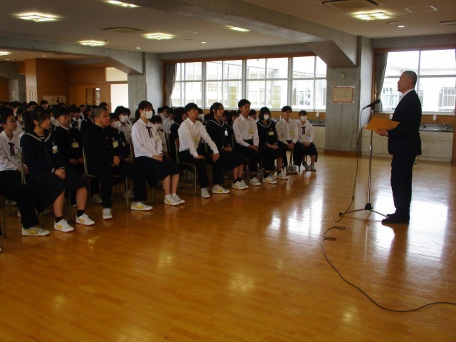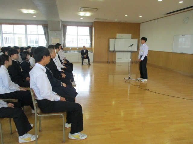 修学旅行実行副委員長が挨拶をした後、校長先生と学年主任のお話を聞きました。