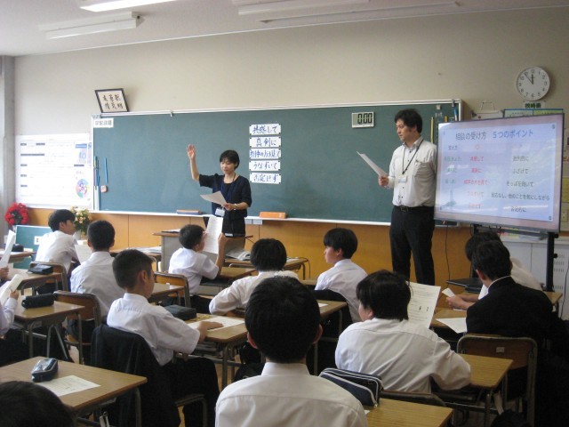 先週に続き、本日は2・5組でスクールカウンセラーの山﨑先生との授業を実施しました。自分の悩み事や困り事を人に伝えたり、逆に周りの人から聞いたりと“相談のコツ”について理解を深めていました。写真は5組の様子です。
