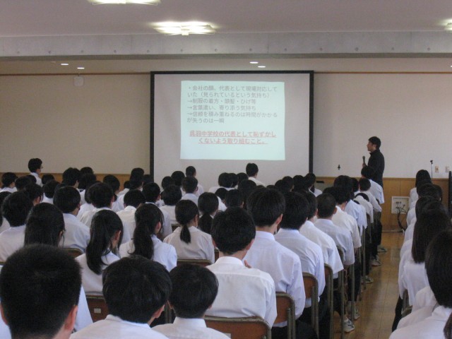 「社会に学ぶ『14歳の挑戦』」にむけてマナー講座を行いました。