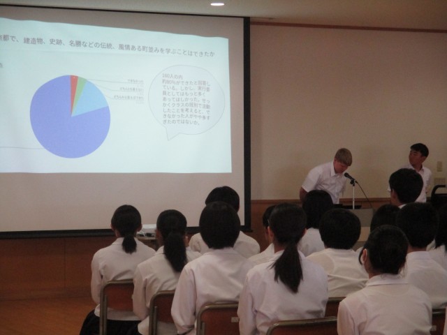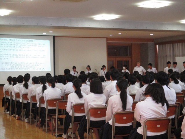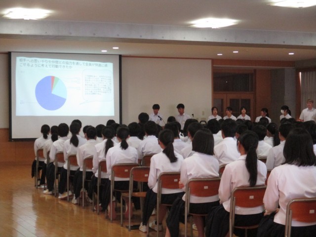 修学旅行実行委員会による事後アンケート結果の発表と振り返りをした後、