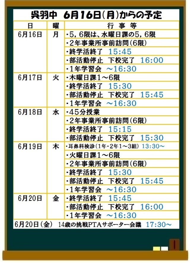 6月16日(月)からの予定