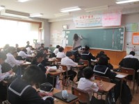 今日でしばしのお別れとなる杉本先生にこれまでの感謝の気持ちを伝えるため、学年生徒...