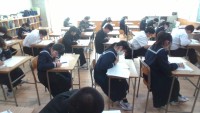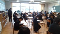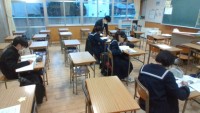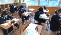 2日目は技術家庭、保健体育、社会のテストに挑戦です!登校した生徒たちは学習物を広...