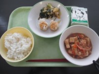 今日の給食は、 ごはん 牛乳 ししゃもフライ いり大豆和え じゃがいものそぼろ煮...