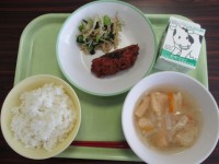 今日の給食は、 ごはん 牛乳 ふくらぎのカレー揚げ おひたし 五目汁です。 3年...