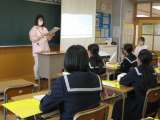 1年4組では、東山保育園から保育教諭の中川さん、西田さんを講師にお迎えし、お話...