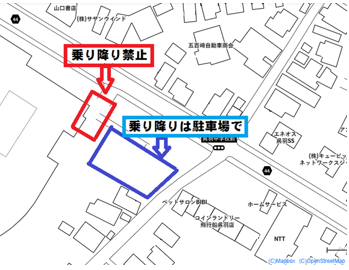 赤色のラインは「スクールゾーン」のため、7:00〜8:30の間は、「自動車の通行...