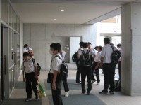今日から2学期が始まりました。各クラスでは提出物を集めています。上から1組、2組...