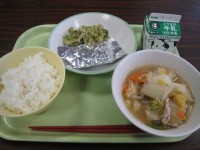 今日の給食は、 ごはん 牛乳 さばの銀紙焼き ゆかり和え はくさいなべです。 さば大好き!何の料理にしてもおいしい。 やっぱり、さばは魚のおおさばだ!