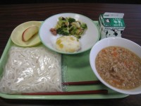 今日の給食は、 ソフト麵 牛乳 ソフト麵の肉みそ 蒸しパン ビーンズサラダ りんごです。 じいちゃんがソフト麵大好きすぎて、バクバク食べている。お腹痛くなるからやめなさいと今までは止めていたけど、もう...