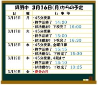 明日の卒業証書授与式に向けた最後の練習の場である予行終了後、3年間の課程を修了したことを証明する修了証授与式を行いました。また、それぞれの分野で活躍した生徒の功績をたたえる、中体連、スポーツ、中文連等...