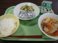 今日の給食は、 ごはん 牛乳 豚肉のジャンロー ポテトサラダ 高野豆腐のみそ汁です。 ポテトサラダ大好きです!!昨日の夕食でも食べました。 食べ過ぎでポテッとした体型にならないように気を付けます。