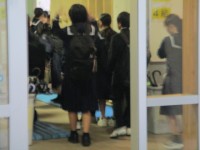 登校の様子です。8時5分は廊下でおしゃべりする様子があり、7分には教室に入り、8時10分から各教室で朝学活が始まり、廊下は御覧のとおりです。