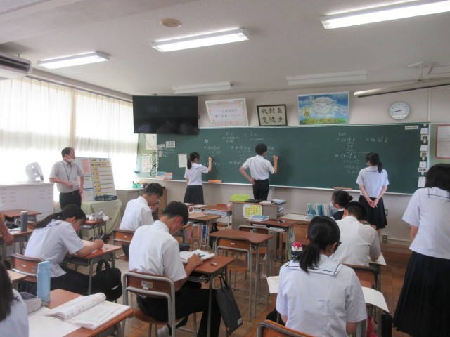 (写真上:3A 体育 バドミントンにも慣れてきました)