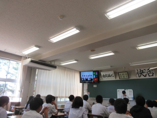 受賞伝達・意見発表、終業式を暑さ対策のため、教室でリモートで行いました。