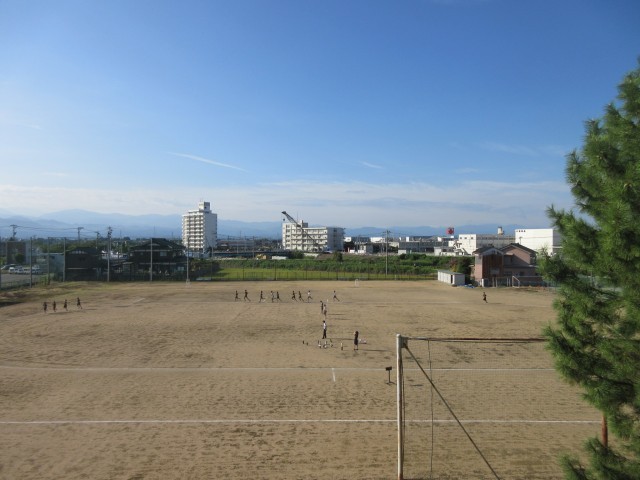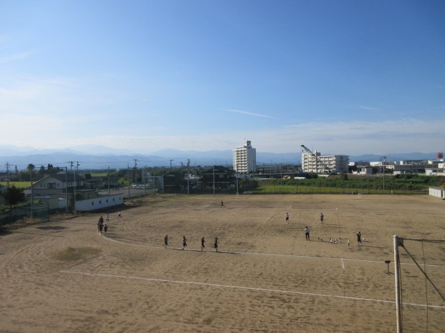 9/4(木) 抜けるような秋晴れの空の下、駅伝部が今日もグラウンドを駆けています。