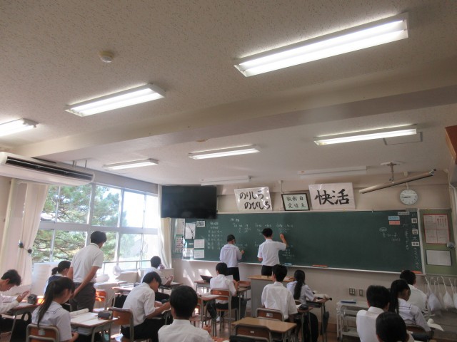 1学年 授業風景 公開日 2025/10/02 更新日 2025/10/02 第1学年 10/2(木) 1学年が今日も学習に取り組んでいます。(写真上:1A 数学 黒板に解答を書いています)(写真下:1B 理科「過酸化水素は何に使いますか?」)
