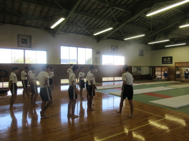 3学年 授業風景 公開日 2025/10/20 更新日 2025/10/20 第3学年 3学年のようすです。 (写真上:3A 英語 ALTの先生が発音を教えてくださいます)(写真下:3B 体育 マット運動です)