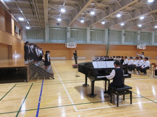 (写真上:学年ごとに合唱リハーサルに取り組みました)
