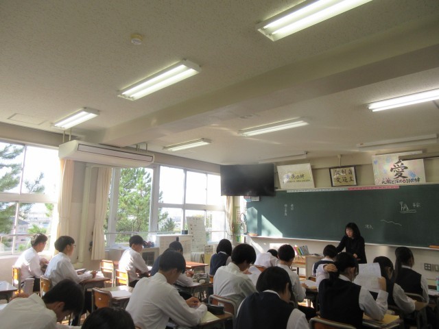 (写真上:2A 国語『平家物語』から「扇の的」)