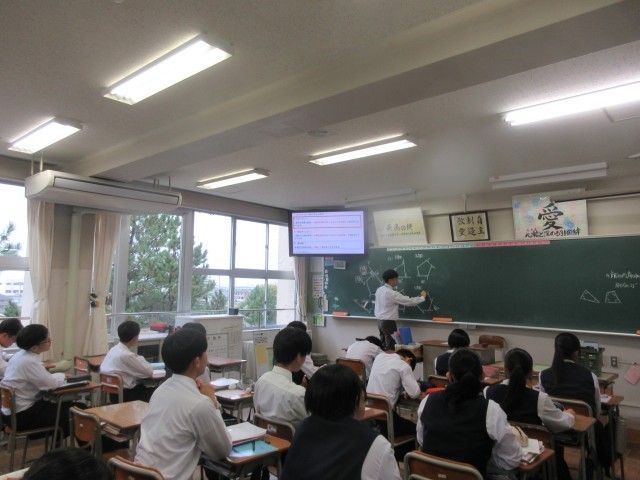 2学年 授業風景 公開日 2025/10/28 更新日 2025/10/28 第2学年 2学年のようすです。 (写真上:2A 数学 多角形の内角の和は?)(写真下:2B 美術 本日は教室で仲間とアイディア交換です)