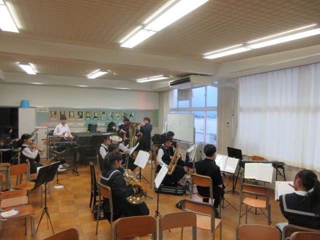 (写真下:吹奏楽部 発表に向けて合奏、合奏!)