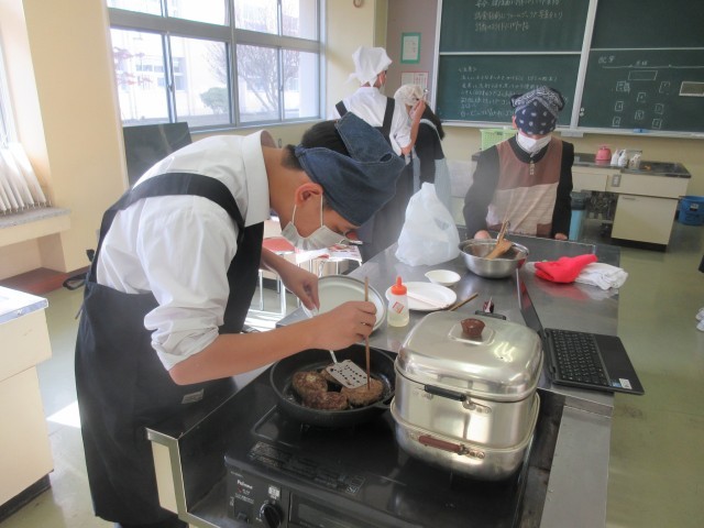 1Bは3~4限に、家庭科の調理実習で「ハンバーグ作り」にチャレンジしました。