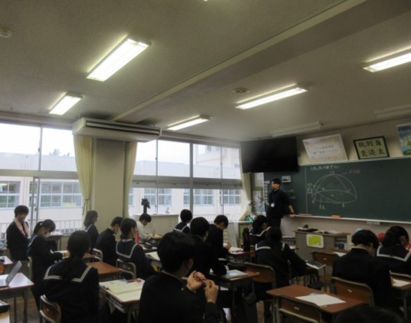 (写真下:3B 理科 天球儀を使って学んでいます)