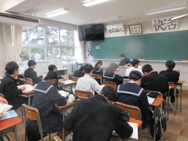 (写真下:ⅠB 国語 今日の学習課題を確認しています)