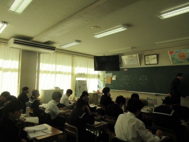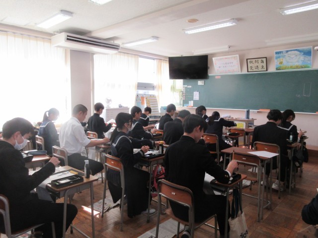 (写真下:3B 英語 書写3学年のお題は『初志貫徹』)