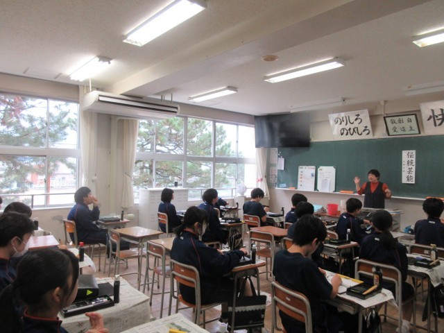 (写真上:1A 国語 毛筆書写『伝統芸能』)