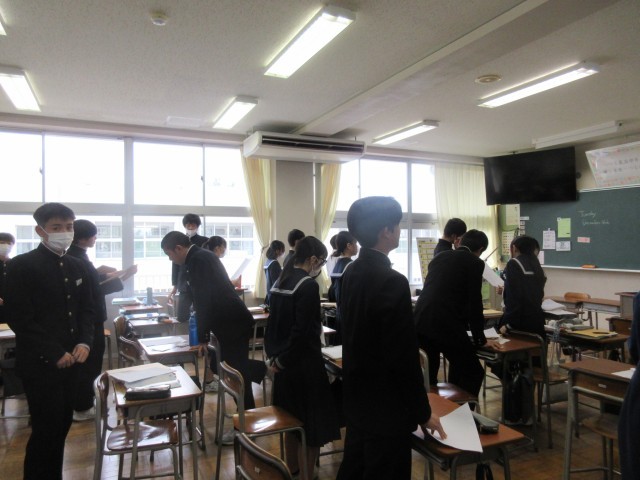 (写真下:3B 英語 自分で英文を作り、朗読しています)