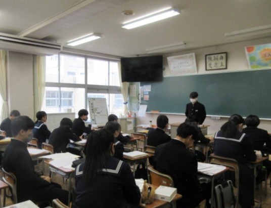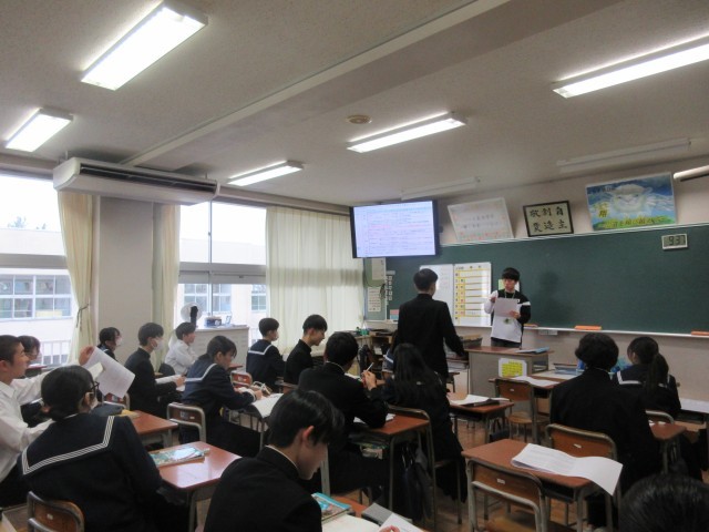 (写真上:3A 英語 英語スピーチの発表会です。発表者に温かい拍手が贈られました)