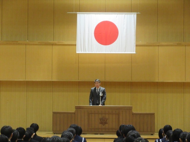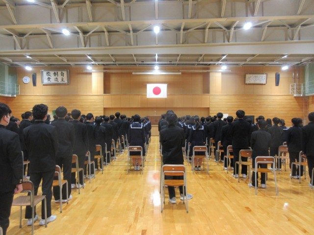 (写真下:校歌斉唱 慣れ親しんだこの校歌を歌う機会も少なくなりました)