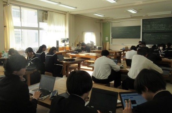(写真下:2B 技術 クロムブックで調べものです)