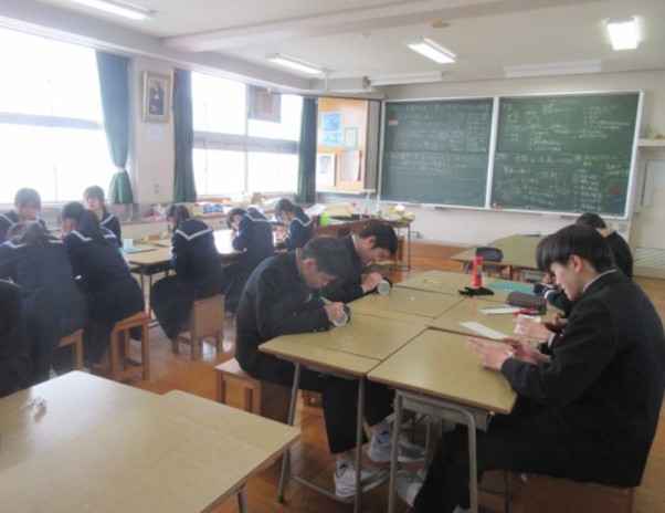 (写真下:3B 美術 サンドブラスト「うまくできたでしょ?」)