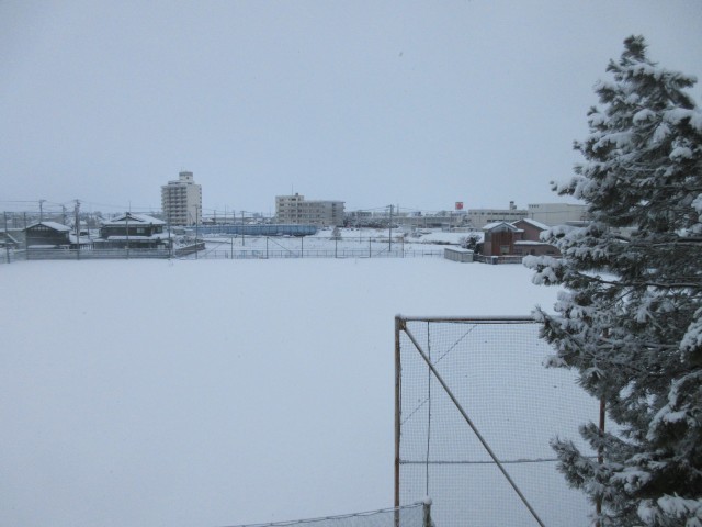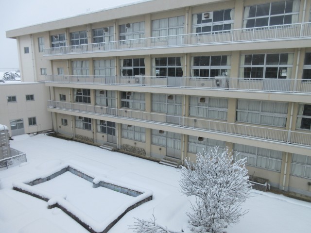 校舎敷地内は雪で真っ白ですが、1Bとボランティアのみんなが除雪してくれました。