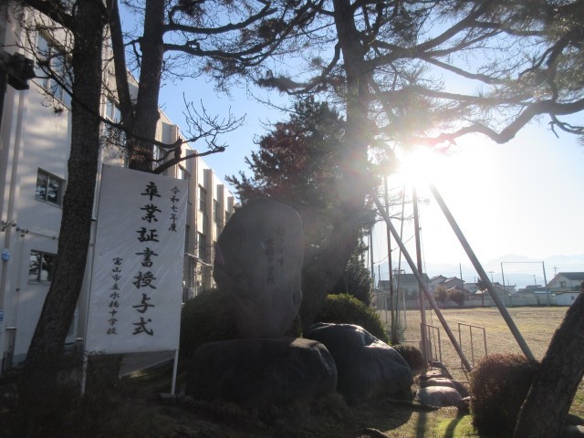 3/12(木) 快晴の空の下、水橋中学校としては最後となる、第79回卒業証書授与式が挙行されました。