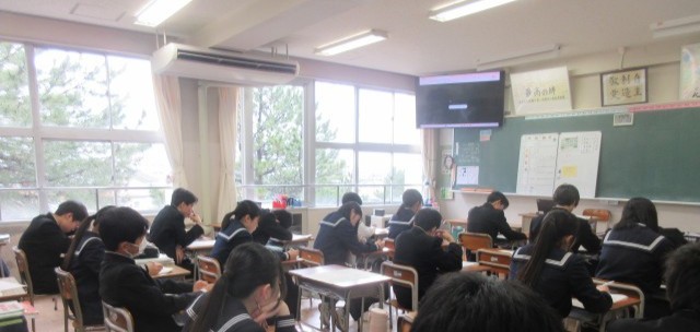 (写真上:2A 英語 聞き取り問題に取り組んでいます)