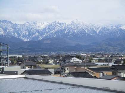 日に日に雪どけが進む春の立山連峰。校舎から見える水橋地区の町と田園風景、その後ろの立山連峰が美しく見える季節になりました。雪の立山から緑の立山に変わるように私たちの1学期の活動も充実していきます。