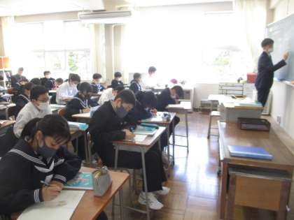 毎日の授業、がんばっています! 公開日 2021/04/22 更新日 2021/04/22 第1学年 教科の授業が始まり、少し日が経ちました。生徒は少しずつ、教科担任制の授業に慣れてきた様子です。生徒は「先生、英語楽しかったよ」「数学、難しいけど分かるようにがんばる」と前向きな感想を口にしていました。これから少しずつ難しさを感じる場面もあるとおもいますが、この調子でがんばって欲しいです。(写真は体育の体操、数学の素因数分解、英語の発音の様子です。)
