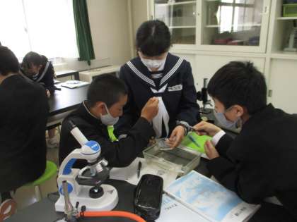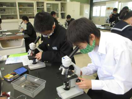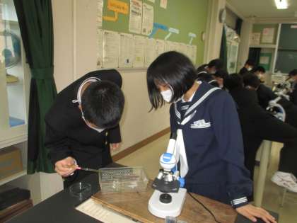 顕微鏡を使って水の中の微生物を観察し、スケッチをする課題に取り組みました。