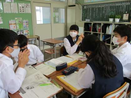 2年 今日の授業風景5/18(火) 公開日 2021/05/18 更新日 2021/05/18 第2学年 1枚目(家庭科)は、調理実習の打ち合わせの様子です。 2枚目(理科)は、小テストの実施と復習の様子です。 3枚目(道徳)は、「住みよい社会」についてグループ学習をしている様子です。