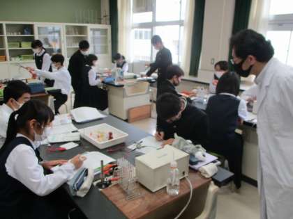 本日の授業 3A理科 3B音楽 公開日 2021/05/18 更新日 2021/05/18 第3学年 5時間目にA組は理科、B組は音楽の授業でした。 班の人と協力しながら、実験を行っていました。 また、音楽では「花」を男女で合唱していました。